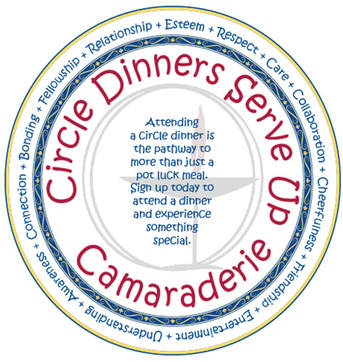 Attending a Circle Dinner is the pathway to more than just a delicious potluck meal! Nothing – not a conversation, not a handshake or even a hug – establishes friendship so forcefully as eating together.